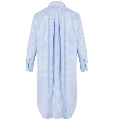 The Amena is an easy-wearing midi shirtdress cut from a crisp cotton poplin. Intended to fit loose and just slightly skim the body, it comes with a removable braided belt that you can use to cinch your waist. The exposed placket and adjustable sleeve cuffs are unexpected elements that add to the overall look of an otherwise simple dress. Wear with a nude slip to make it feel extra opaque.