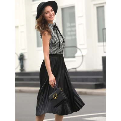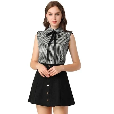 This Allegra K shirt is perfect for creating an ultra-feminine look with a statement bow tie neckline. It’s designed with the ruffle sleeveless, which can show your beautiful arm curves. Great for styling with a tailored mini skirt for a smart look or tucked-in jeans for an office look.Vintage and elegant in the spring season.Help improves your charm while dating.Classic and versatile, simple and stylish.This button-front blouse is infused with a vintage gingham plaid pattern that is perfect for OL style.Ruffle trim and full placket highlight the perfectly sleeveless of this soft and straight shirt.Occasion: Work, Office, Formal, Casual, Shopping, Street, Date, School, Daily Wear, etc.