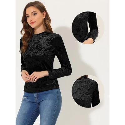 This t-shirt styled in a crew neck and solid velvet fabric brings casual and chic to whatever outfit you’re putting together. Soft and shimmery velvet fabric brings instant romance to any day or night look. Modern and classic. There’s nothing like a touch of velvet to elevate your style, and this t-shirt also features a crew neck and h-line design for a put-together look.