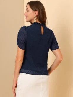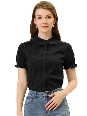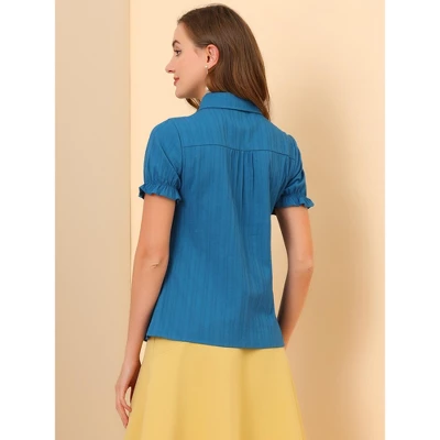 Graceful and elegant, this top with a purple floral print features a button-down and ruffle cuffs. This top is made of soft fabric, with an elegant purple flower design, which is ideal for adding to your cute wearing style. Get this bubble short sleeve top to add to your wardrobe’s summer. Occasion: Party, Office, Shopping, Dating, Weekend Gathering, Beach, Outdoors, Casual, etc.