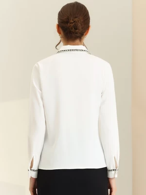 Women’s Color Block design in collar, front, and cuffs adds a subtle feminine twist. Perfect for casual weekend looks, this top can easily create a chic look. It perfect piece as a casual but eye-catching top for work, office, or business occasions to keep your styling look effortless. Your wardrobe isn’t complete without this top. It’s perfect for chic looks with skirts or pants.