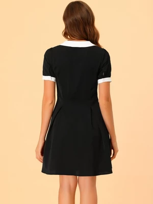 - Contrast Color, Bow Tie Neck, Short Sleeve