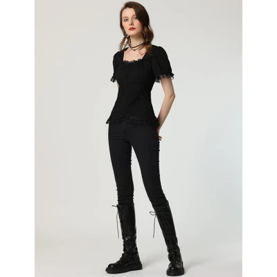- Lace Up Back, Gothic Style Blouse