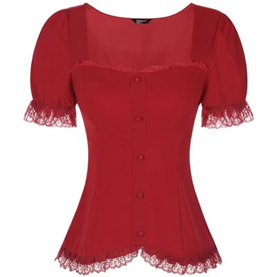 This victorian blouse, designed with a sweetheart neck and short puff sleeves, adds a touch of retro to your wardrobe. Lace decor and lace up design instantly elevate this retro blouse and make it a sophisticated choice for day or night. Pair it with pants or skirts for a sweet and vintage look. Suitable for spring/summer and for many occasions, such as Casual, Date, Club, Lolita Cosplay, Masquerade, Steampunk Party and Daily Wear.