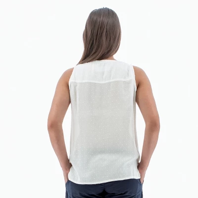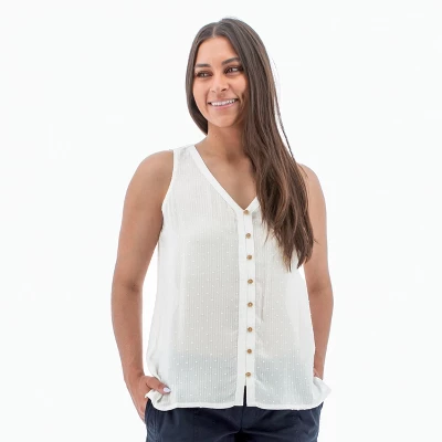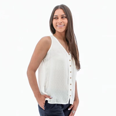 The Camilla Tank Top is an elevated choice for causal summer outfits. The standout of this semi-sheer tank is the sustainable, swiss dot fabric. Made from TENCEL™ Modal, an eco-friendly fiber that mimics the drape and feel of silk, the fabric is textured with color-matched dots throughout. This feature adds design and interest subtly so that you can easily pair this with anything in your wardrobe. This lightweight tank is finished with a full button front, bra-friendly straps, and solid poplin trim. Love this style but want sleeves? Check out the Camilla Top.