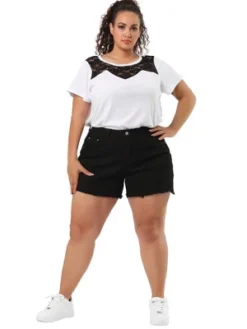 Agnes Orinda Women’s Plus Size Denim Shorts Casual Drawstring Elastic Waist Jean Short Pants