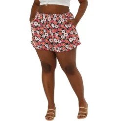 Agnes Orinda Women’s Plus Size Elastic High Waist Ruffle Hem Pleated Midi Floral Print A Line Skirts