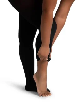 Enhance your studio style in the Footless Tight with Self Knit Waistband. Features a self knit waistband that holds the tight securely in place without the discomfort of elastic. Made of a nylon and spandex blend that wicks moisture to keep you dry while working up a sweat. Footless option makes it easy to slip on CapezioŽ footUndeez⢠for a lyrical or modern class.