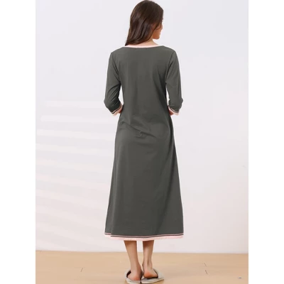 - Features v neck, color block and 3/4 sleeves, this long nightgown is made in soft fabric 65%Rayon 30%Polyester 5%Spandex, keeping all-night comfort