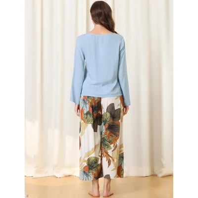 Womens 2pcs Long Sleeve Capri Pants Floral Lounge Set Sleepwear Pajama Sets. Made from soft fabric, this pajama set will keep you comfortable all night long. This sets is an essential for your wardrobe. It is perfect for loungewear, nightwear, sleepwear, home bedroom, daily wear, etc. This soft sleepwear will keep you comfortable all night long. No matter the cozy bedtime, casual home relax, laze afternoon, comfy bath, the soft and lightweight womenâs button down pajama set could company with you all the time. It also will be a perfect gift for your mom, wife,daughter, girlfriend,or friends as lounge wear,sleepwear, these cute sleepwear sets are good choice for women. Great choice on Casual Daily, Nightwear, Sleepwear, Boudoir, Holiday and Lounge Wear.