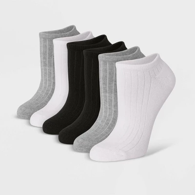 Hanes Pure Comfort Women's Organic Cotton Ribbed 6pk No Show Casual Socks – White/Black/Heather Gray 5-9