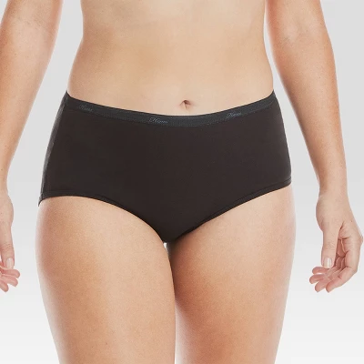 Soft and breathable, this better-than-basic cotton brief underwear is made with HanesÂŽ Cool ComfortÂŽ fabric that wicks moisture from your skin to keep you comfortable all day. The classic brief silhouette features a high rise and full front and back coverage with an ultra-soft waistband. No-ride-up leg bands stay in place while TaglessÂŽ construction eliminates that annoying itch. Know what’s even better? These womenâs briefs are available in a convenient pack of 10 black panties so you will never be without a clean pair. Stock up and start experiencing the true comfort of Hanes, all day, every day.