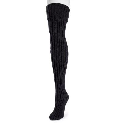 MUK LUKS® Women’s Chunky Ribbed Over the Knee Socks can’t be beat for cozy warm feet. Featuring a luxurious sweater knit design, these fashionably modern socks keep legs toasty warm in style. Machine wash gentle, no bleach, tumble dry low. Imported. – 100% Acrylic- Multiple Color Options Available – One Size Fits Most (Women’s Sizes 6-11)