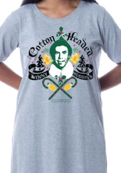 Elf The Movie Womens’ Buddy Cotton-Headed Nightgown Sleep Pajama Grey