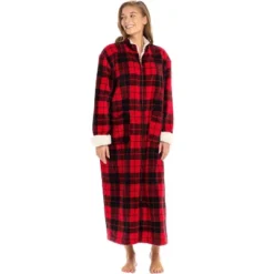 Women’s Zip Up Fleece Robe, Soft Warm Plush Oversized Zipper Bathrobe