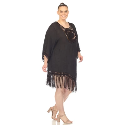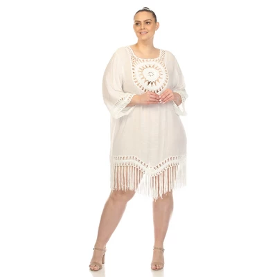 This White Mark cover up is a perfect style partner on your next get-away. The front crochet design with intricate details is inspired by the stunning sunshine. Made from the comfiest and lightly sheer fabric that is soft to the skin. Features a ž wide sleeves and fringe edges for a chic look.