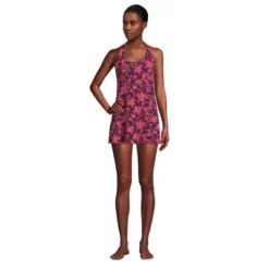 Lands’ End Women’s Chlorine Resistant Square Neck Halter Swim Dress One Piece Swimsuit