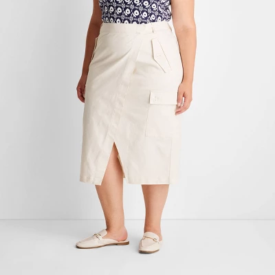 Make a versatile and stylish addition to your wardrobe with this Cargo Midi Skirt from Future Collective™ with Reese Blutstein. Made from cotton and recycled cotton with spandex, this solid-color cargo skirt is designed with a mid rise in a below-knee length. Featuring a side button closure and belt loops, the skirt also has front pockets for stashing small essentials.