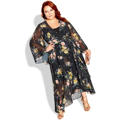 The Fleetwood Print Maxi Dress is a dreamy style that cannot be beaten! Offering a floaty chiffon fabrication and full length bell sleevesBold and fiercely fashionable, no one does plus size fashion like City Chic. Loved around the globe for its diverse range of fashion-forward styles for any occasion. From show-stopping evening gowns to workwear and casualwear, City Chic will take your style to bold new heights. Available in sizes 14-32.