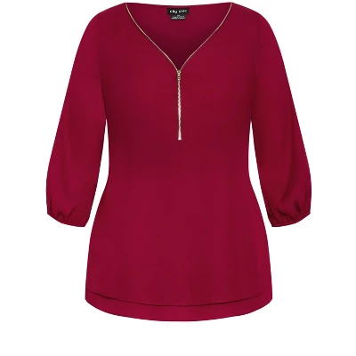 Our Sexy Fling Elbow Sleeve Top comes in a statement ruby hue that’s perfect for injecting a pop of color into your wardrobe. The 3/4 sleeve with elastic cuff adds to the pretty silhouette of this top, while the hip-length hemline brings versatility to this piece.