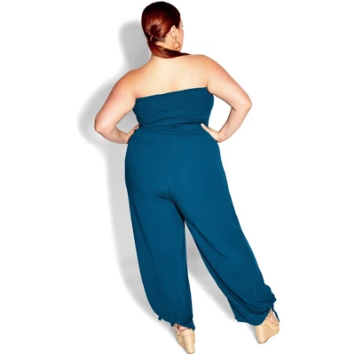 Steal stares from day to night with the stunning Smocked Jumpsuit. Bold-hued and trendy, this chic number flaunts a strapless neckline, shirred bodice and lightweight woven fabrication. Bold and fiercely fashionable, no one does plus size fashion like City Chic. Loved around the globe for its diverse range of fashion-forward styles for any occasion. From show-stopping evening gowns to workwear and casualwear, City Chic will take your style to bold new heights. Available in sizes 14-32.