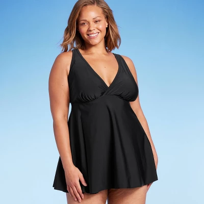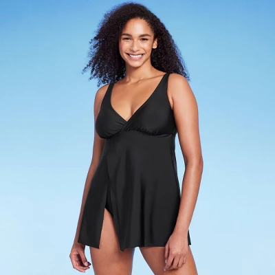 For a modest yet playful swimwear piece, the Side Slit Swim Dress from Kona Sol™ is sure to hit the mark. This swim dress provides full torso and seat coverage, and hits at mid-thigh so you even get some leg coverage. A side slit, shirring along the bust and a deep V-neckline add playful touches to the modest cut, and the V-neckline is balanced out by sewn-in cups that provide extra bust coverage. Adjustable straps add the finishing touch, helping you to find the most comfortable fit.