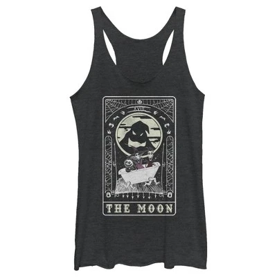 - Strut your stuff with this stylish new Halloween Women’s Racerback Tank Top that is perfect for the spooky season! Featuring Oogie Boogie as the moon tarot card, with a special appearance of Lock, Shock, and Barrel in their four-legged bathtub.