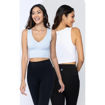 This medium impact bra is designed with a compression fit to hold your chest down while jumping, running or stretching. This athleisure bra will keep you in place through any physical activity. The seamless material provides additional support and overall comfort. This V-neck bra is made with four-way stretch fabric to move with you and allow a full range of motion.